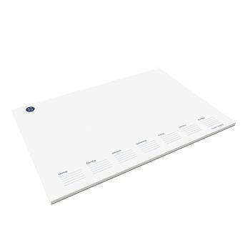 Schreibunterlage DIN A2, Papier: 70 g/m² holzfrei weiß, FSC möglich, chlorfrei gebleicht, 50 Blatt, Druck: Offsetdruck, Verarbeitung: einseitig geleimt