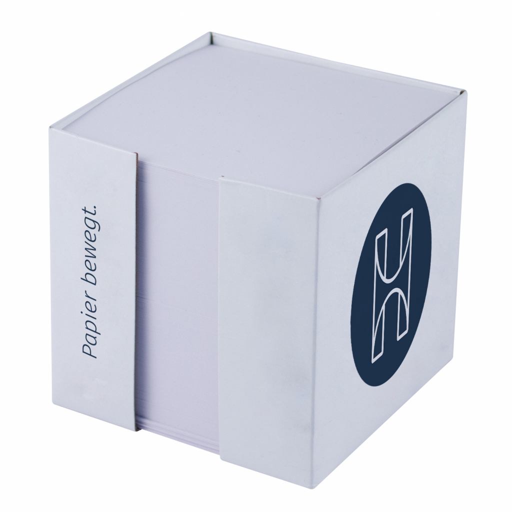 Kartonbox 9,8 x 9,8 x 10 cm, Box: Chromokarton 395 g/m², Füllung: 90 g/m² holzfrei weiß, FSC möglich, chlorfrei gebleicht, Kartonbox: Offsetdruck, Verpackung: einzeln in Klarsichtfolie eingeschweißt